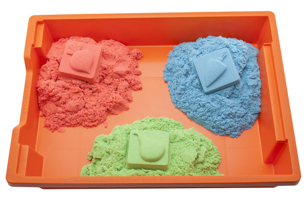 Кинетический песок возможен следующих цветов: песочный, сиреневый, зеленый, голубой, розовый, желтый. Каждый цвет идет весом по 1 кг в отдельной упаковке.